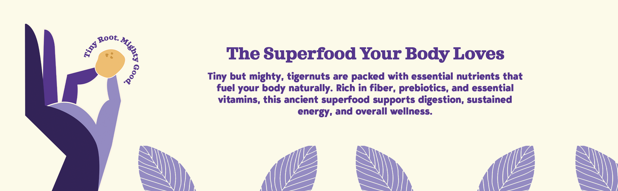 Just a delicious gluten free, zero sugar and high fiber cereal made from the nutritious tiger nut root, naturally sweetened with a hint of vanilla and honey. It's crunchy, tasty, and eco-friendly-packed with prebiotic fiber and essential nutrients!